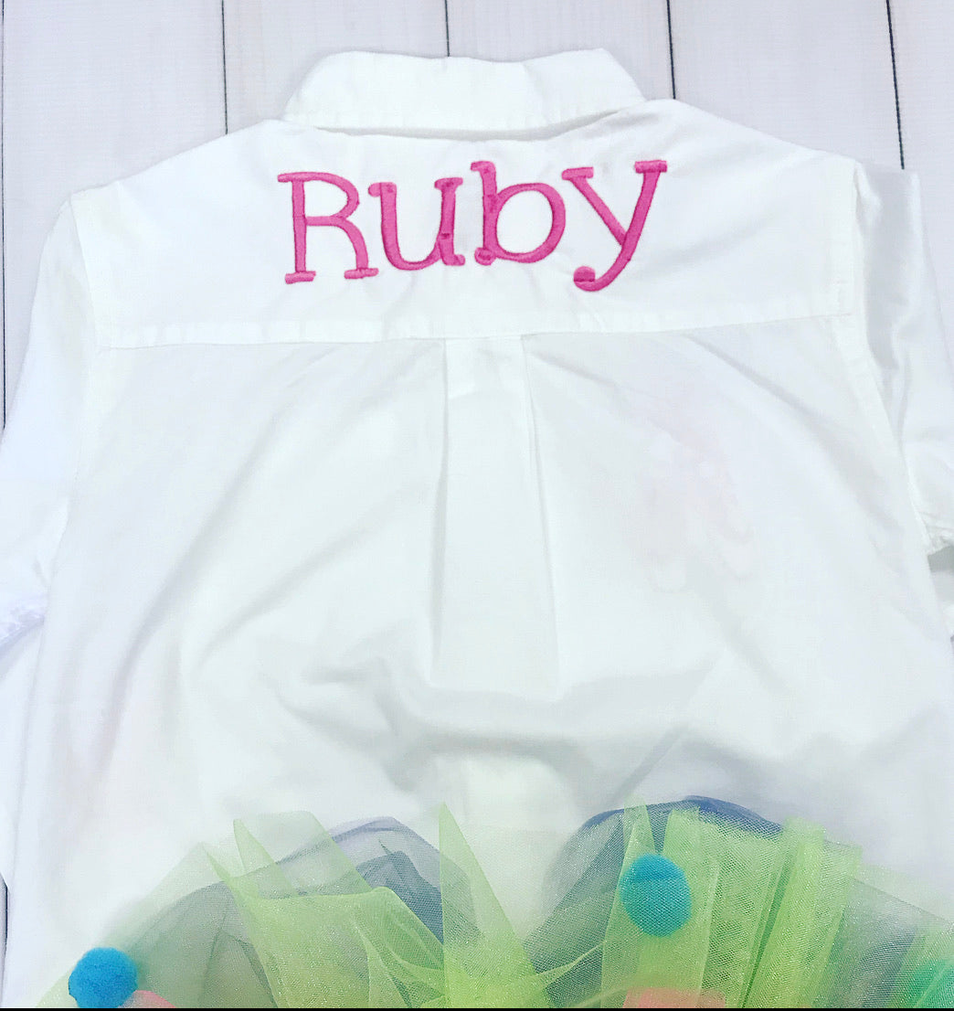 Please let me know your color preferences and if you want a dance mini on the front or initials
